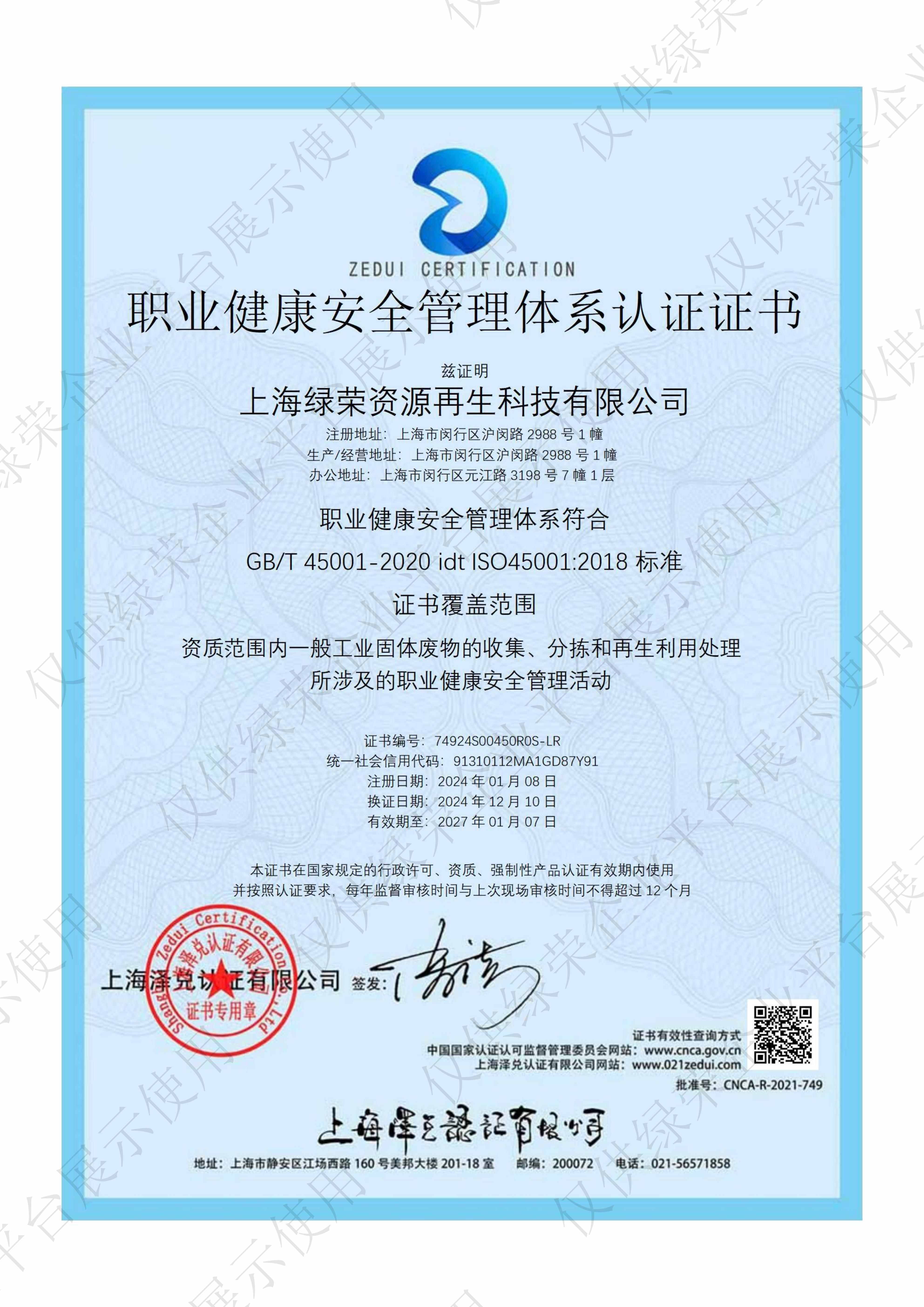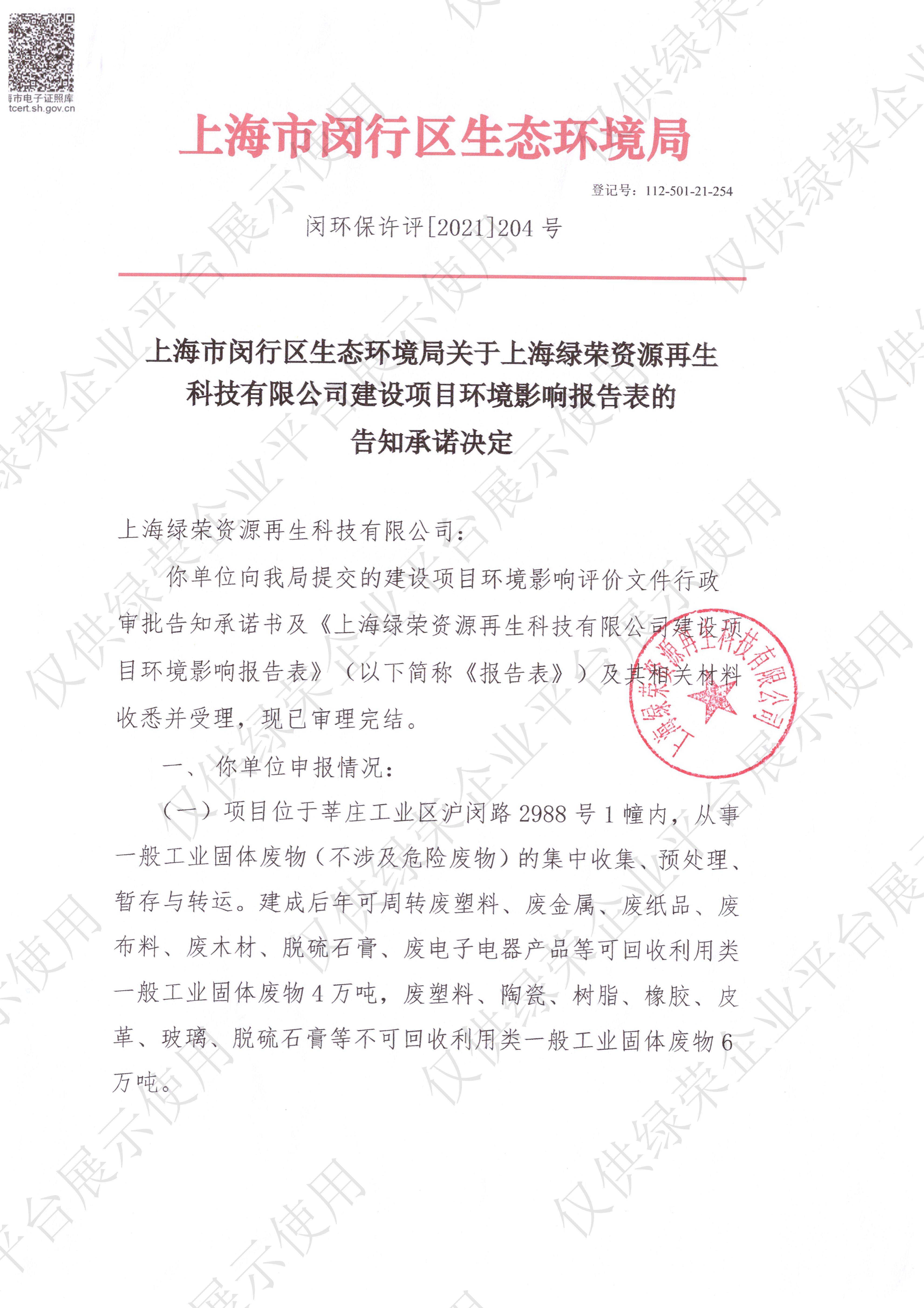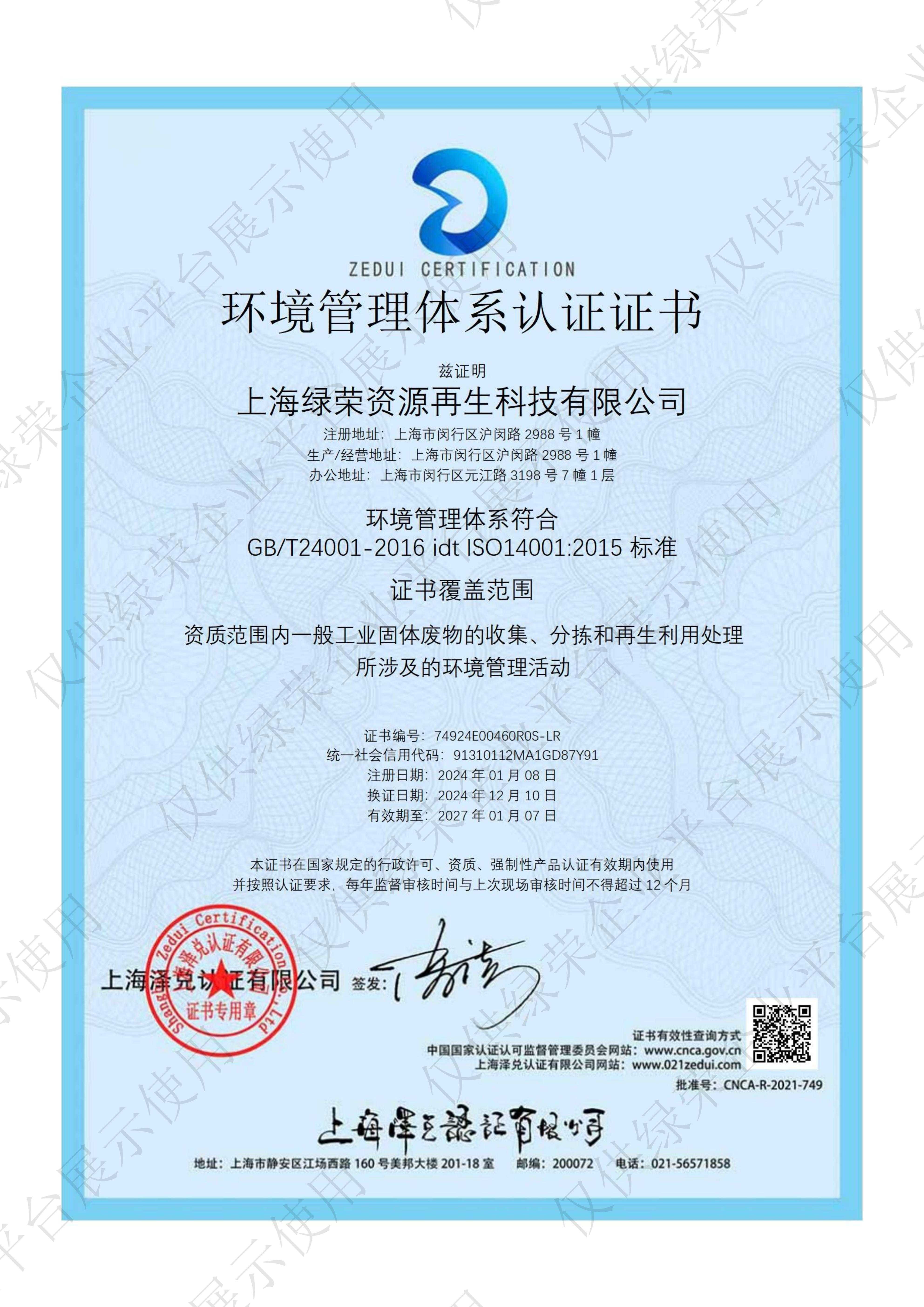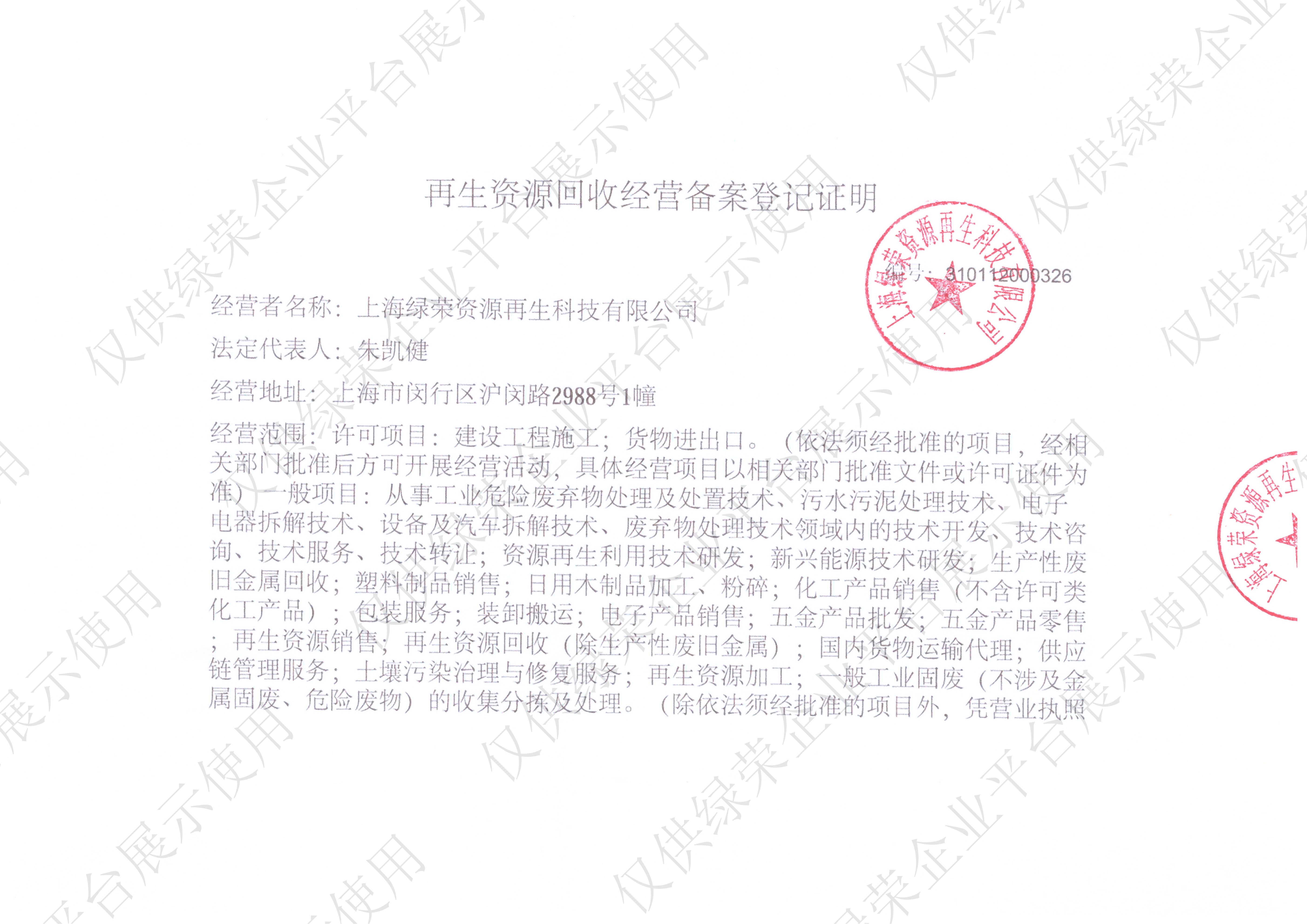 上海绿荣资源再生科技有限公司